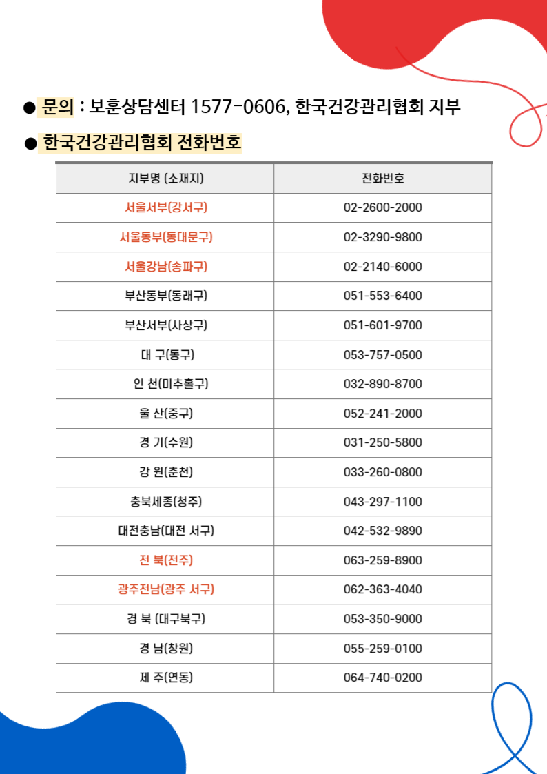 *보훈(지)청이 아닌 한국건강관리협회 지부로 직접 신청