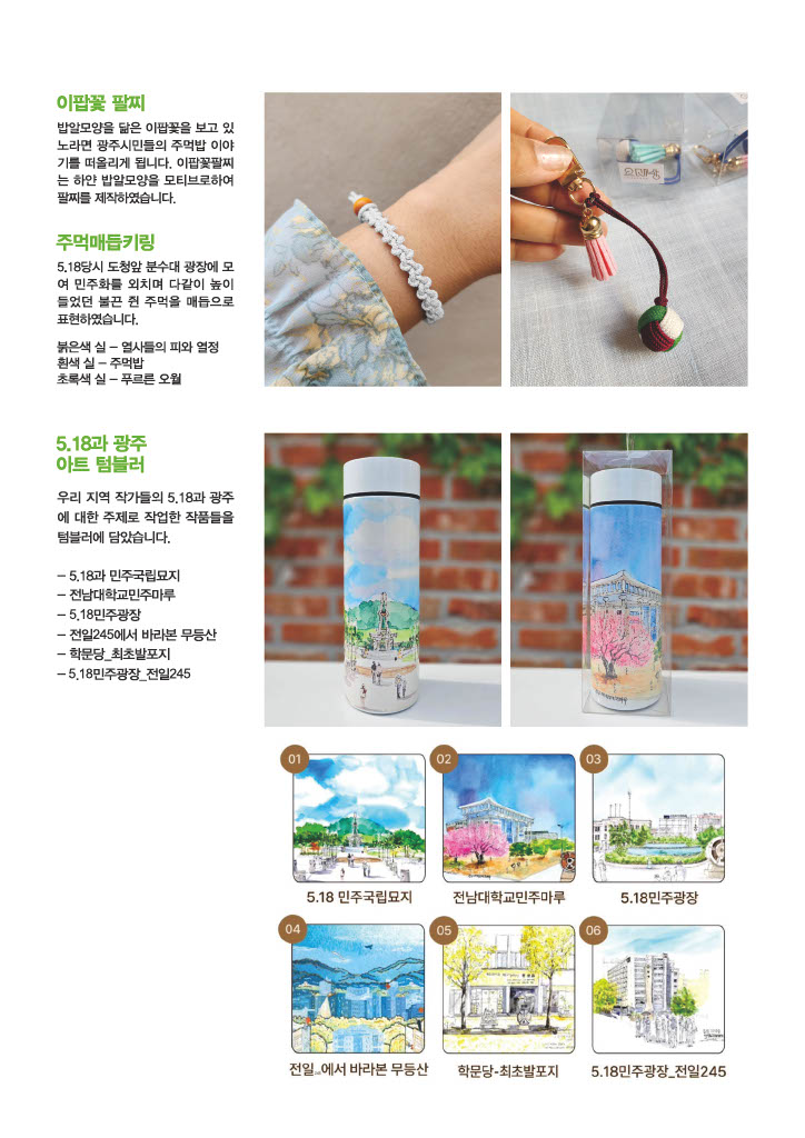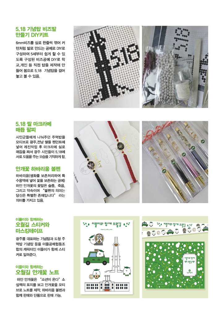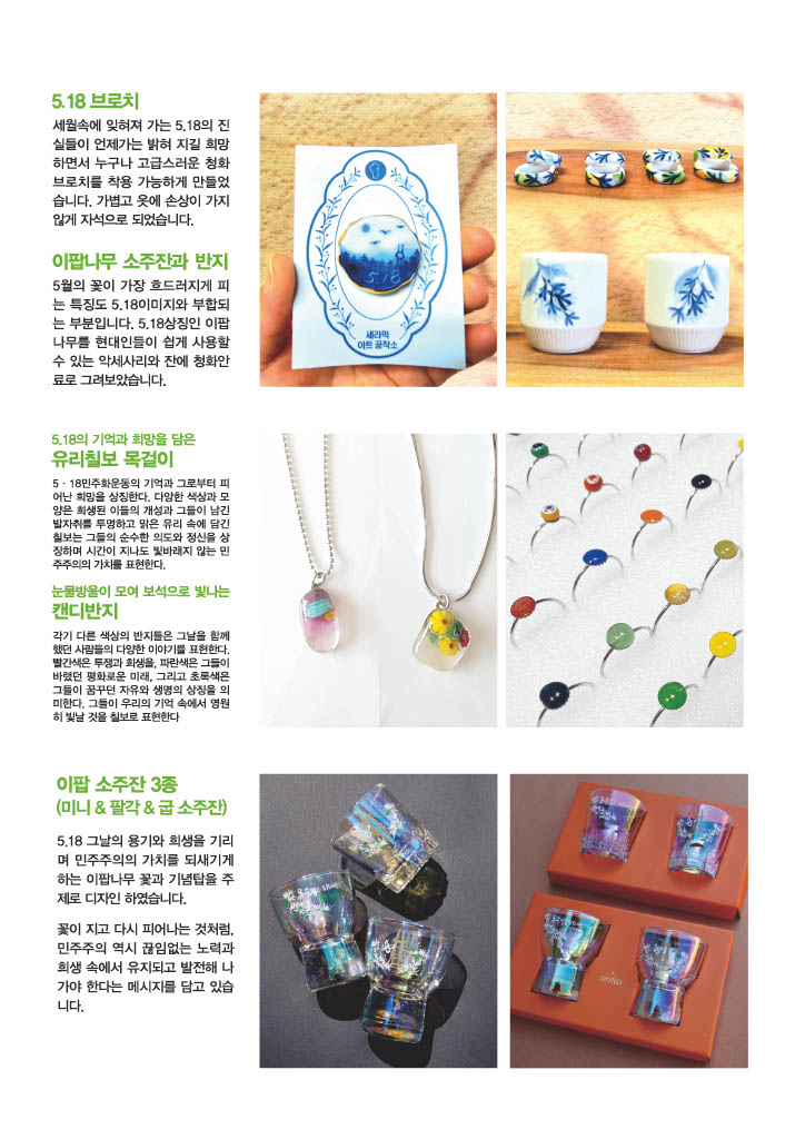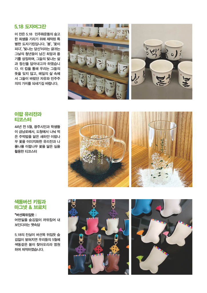 ※ 현재 기념품은 오프라인에서만 (국립5·18민주묘지 내 쉼터[민주관]) 구매가능하며, 구매문의는 062)383-5180으로 연락바랍니다.