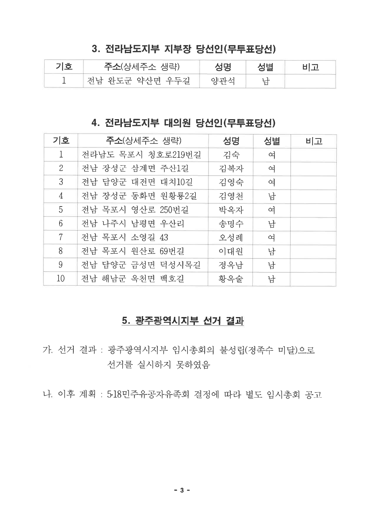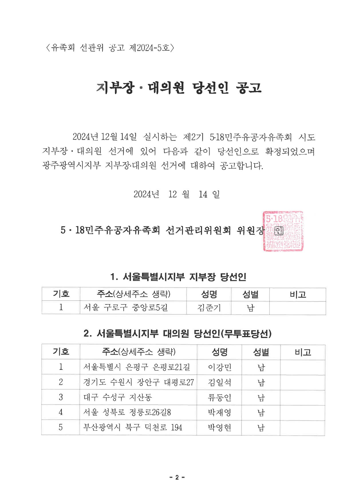제2기 지부장·대의원 당선인 공고