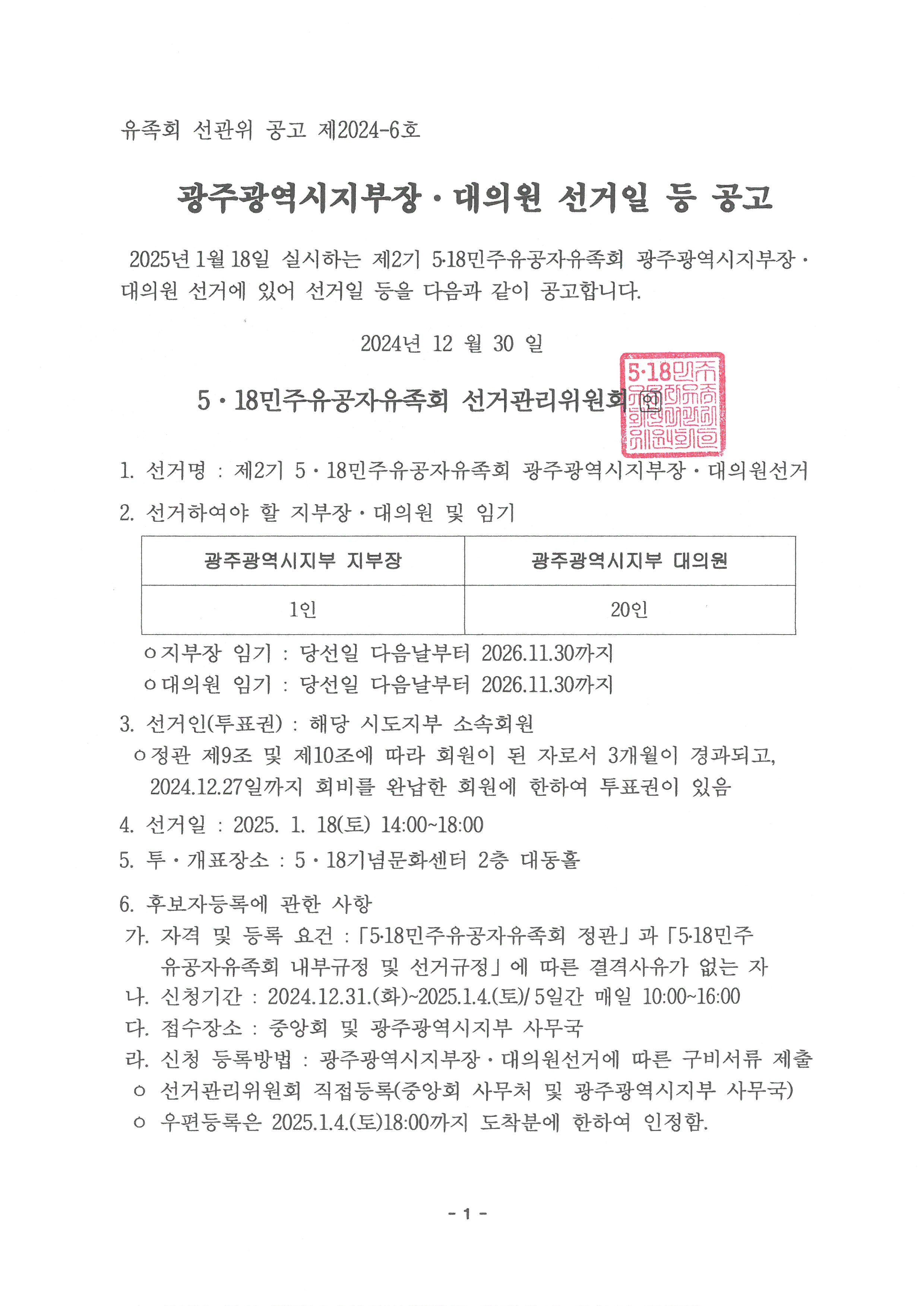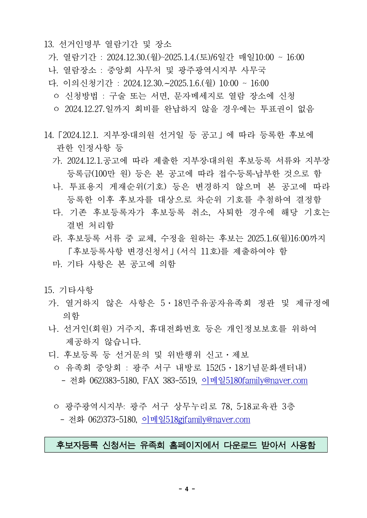 광주광역시지부 후보등록 변경신청 안내(24.12.1 공고 입후보한 후보만 해당)