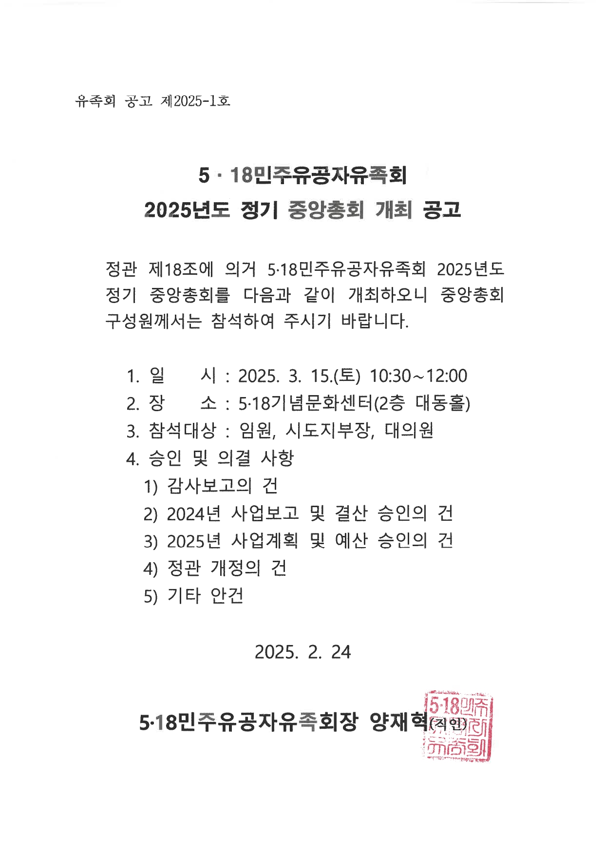 2025년 정기중앙총회 개최 공고