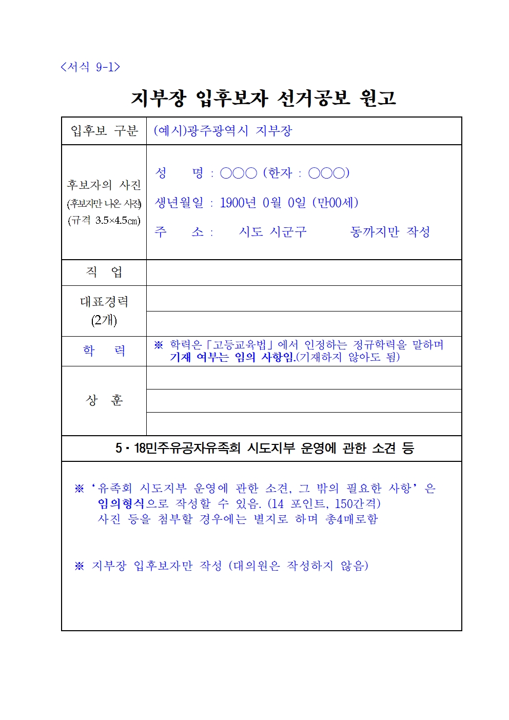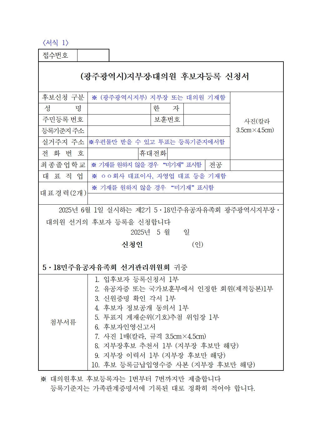 ※ 또한 2024.12.14. 광주시지부 지부장·대의원 선거 후보자 중 후보 등록을 원하시는 분께서는 하단 파일을 다운받아 제출하여 주시기 바랍니다.