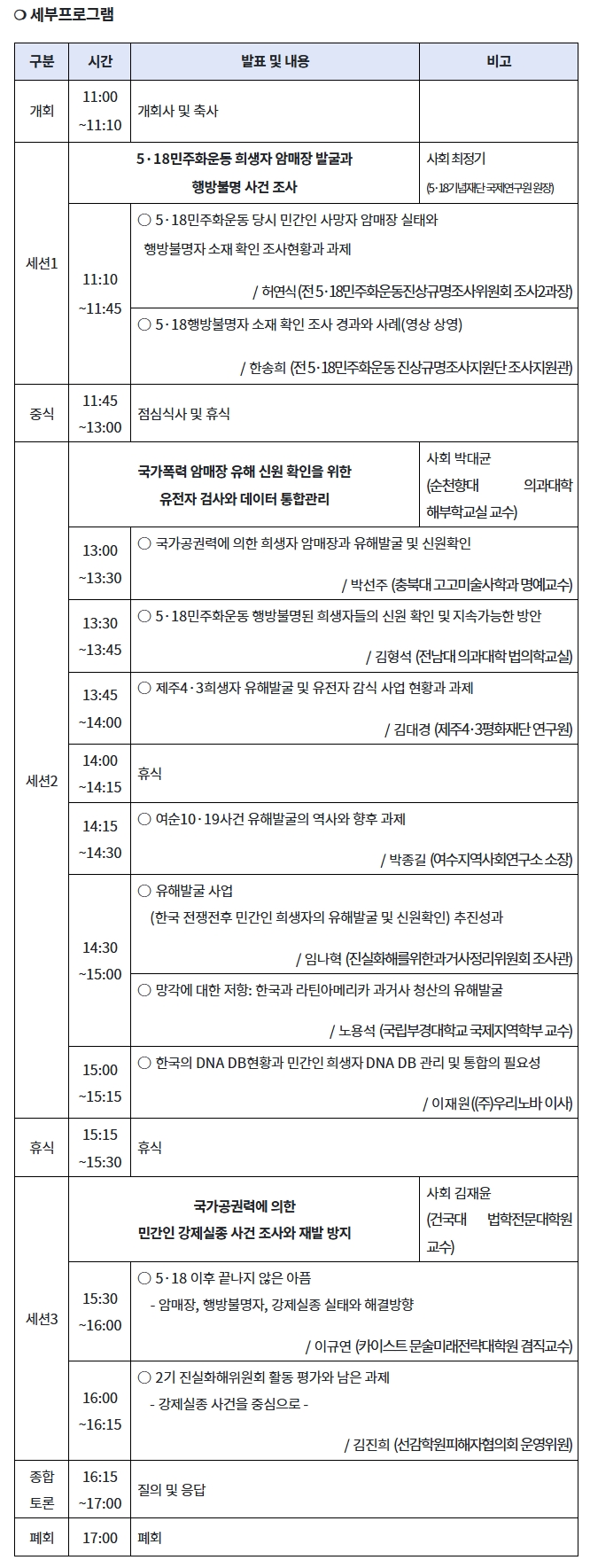 5·18민주화운동 45주년을 기념하여 5·18민주화운동에서 암매장되었거나 행방불명된 분들의 대한 조사를 공유하고 토론하는 자리를 안내하오니 관심 있으신 회원 및 유가족, 시민분들의 많은 참석 부탁드립니다.